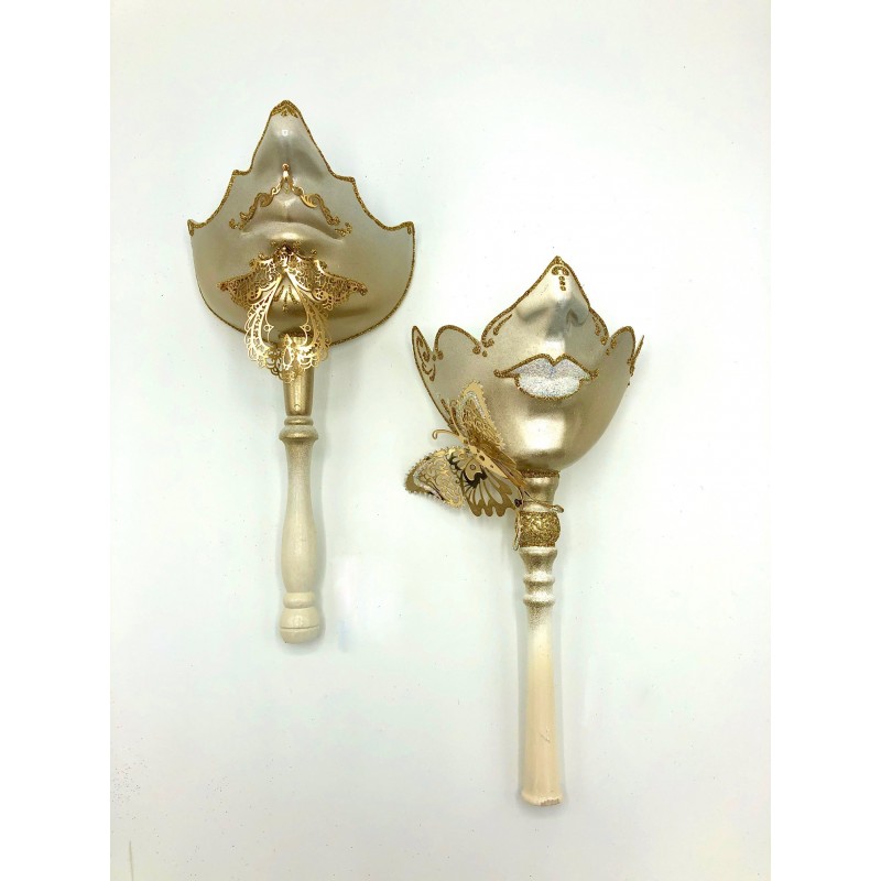 Decorative mask of the lower part of the face. Decorated with glitter and filigree metals. It is not a medical device.