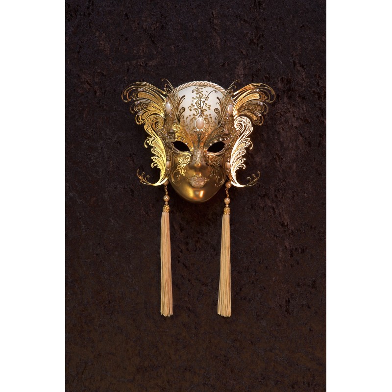 Authentic Venetian mask in resin, handcrafted according to tradition by La Fucina dei Miracoli craftspeople since 1975. This mask is not wearable.