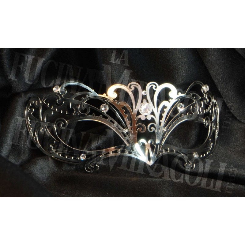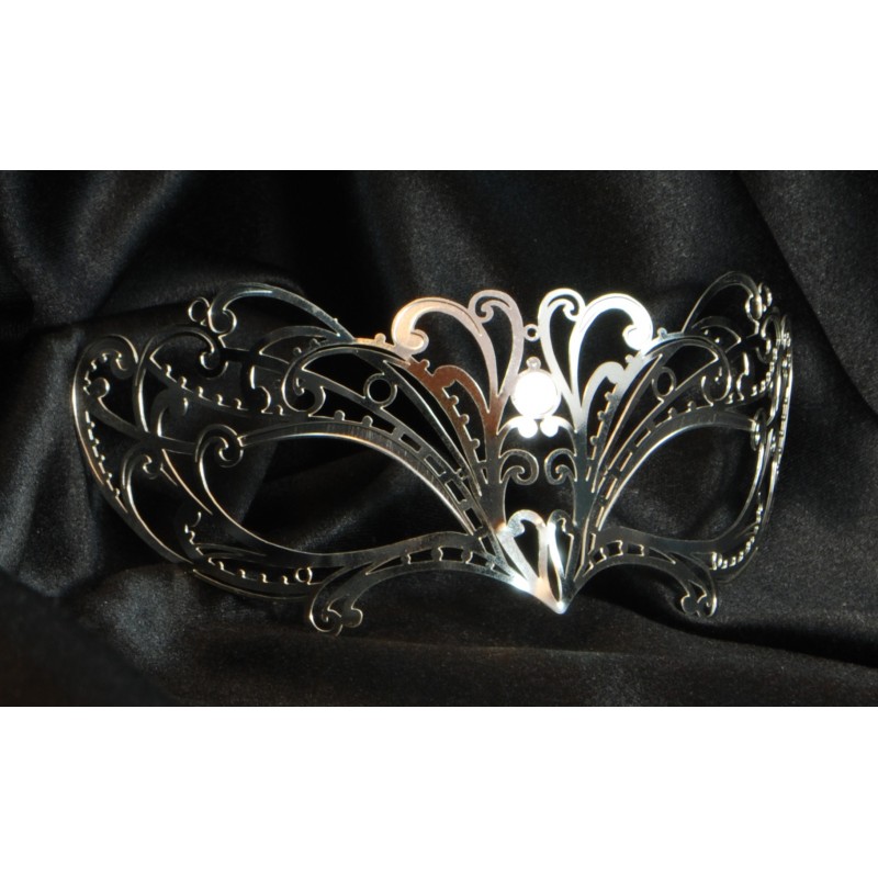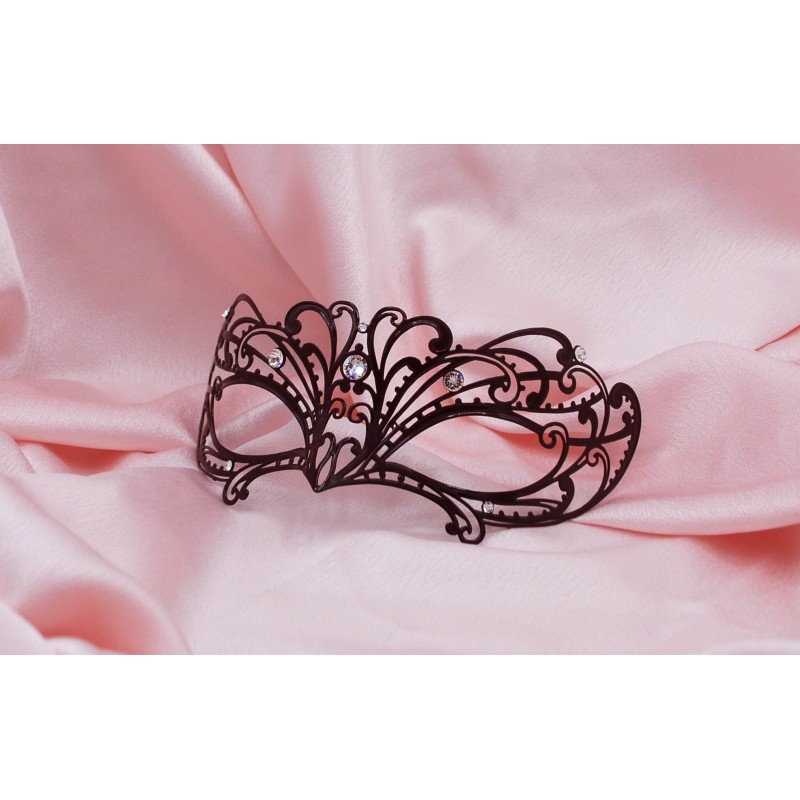 Hand-crafted black metal filigree mask. Metal filigree masks are our innovation: they were first designed in 2008. Papete is an original design, made entirely in Italy by La Fucina dei Miracoli craftspeople.