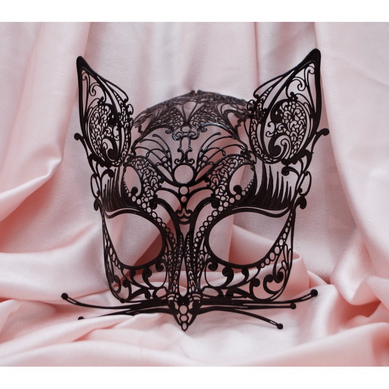 Hand-crafted black metal filigree mask decorated with high quality crystals. Metal filigree masks are our innovation: they were first designed by Lucia Zerman in 2008.
