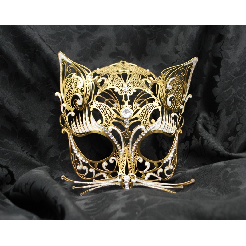 Maschera in metallo traforato, calzabile perfettamente in quanto preformata su un volto. Decorata con cristalli di altissima qualità.