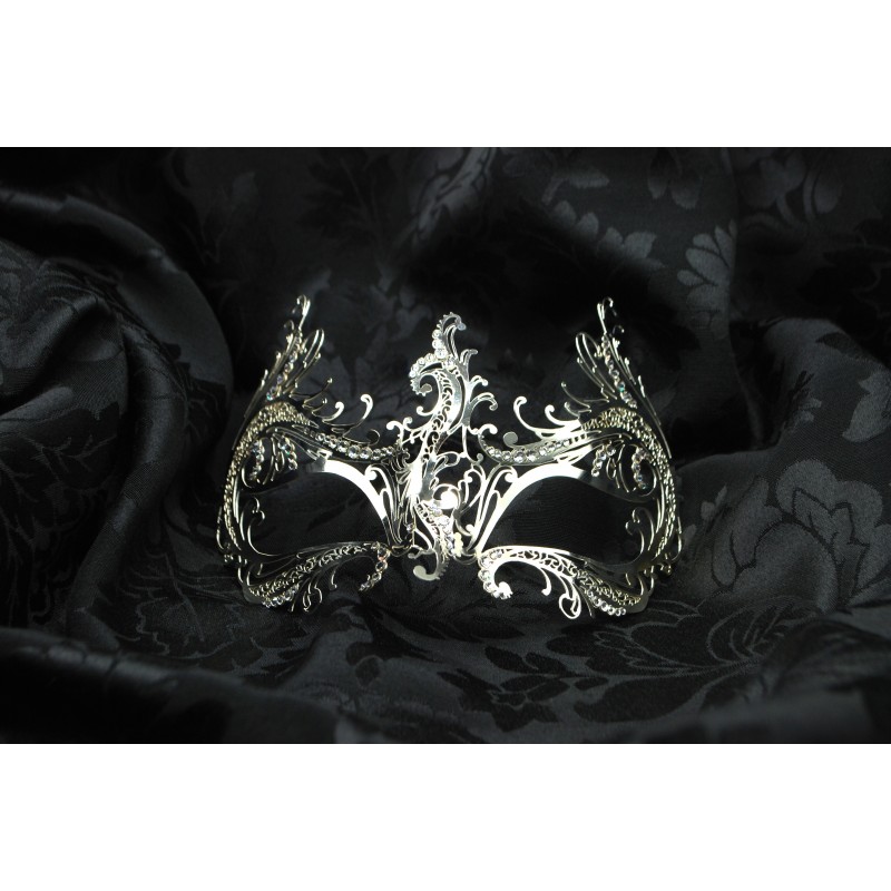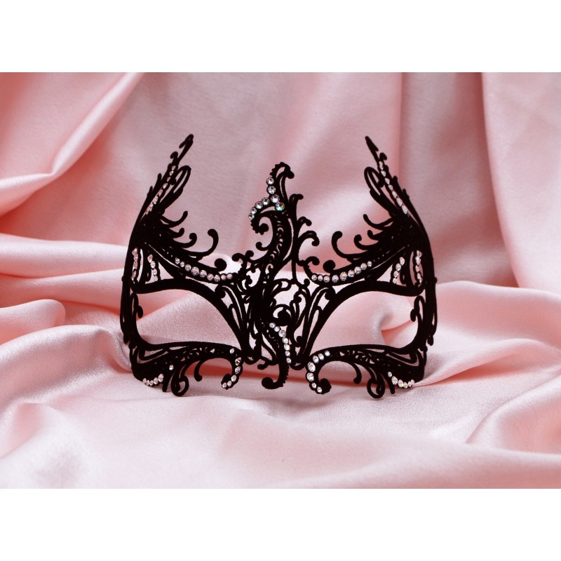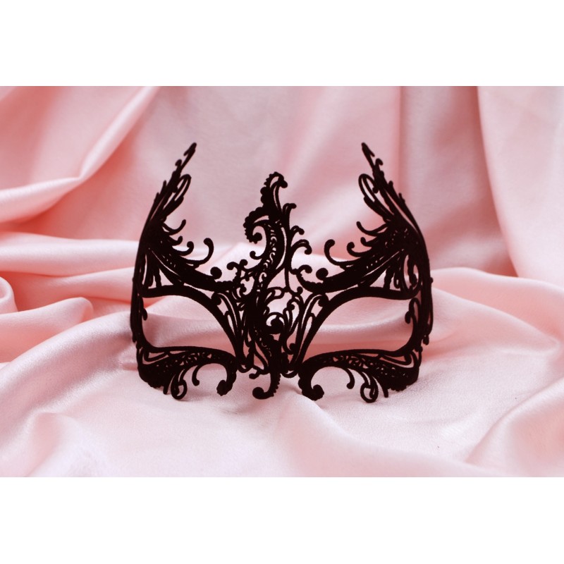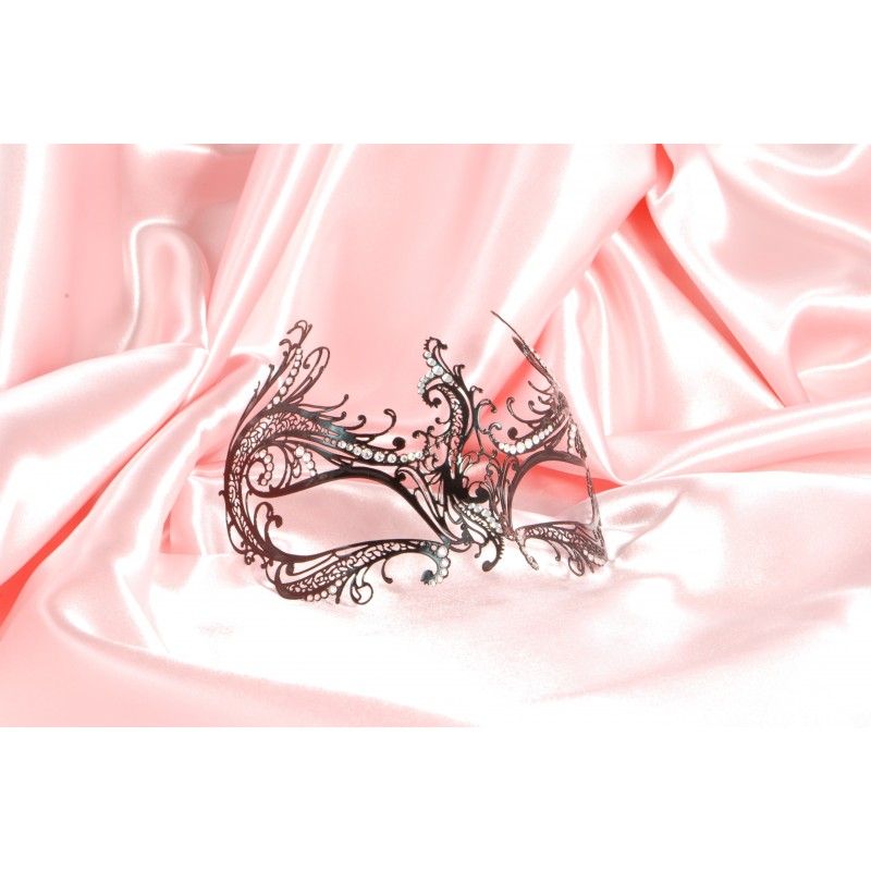 Hand-crafted black metal filigree mask. Metal filigree masks are our innovation: they were first designed in 2008. Erotica is an original design, made entirely in Italy by la Fucina dei Miracoli craftspeople.