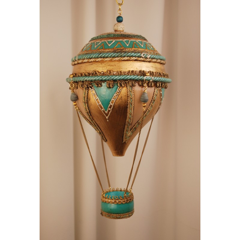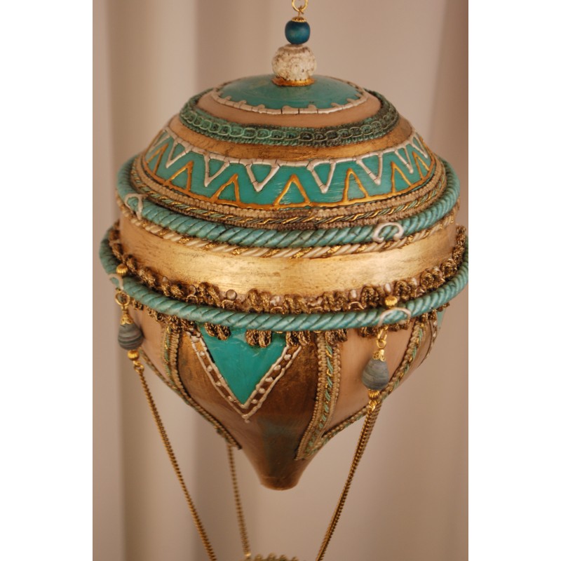 Papier-mâché hot air balloon made entirely by hand. The gracefulness of the balloon and the delicacy of a finely decorated object.