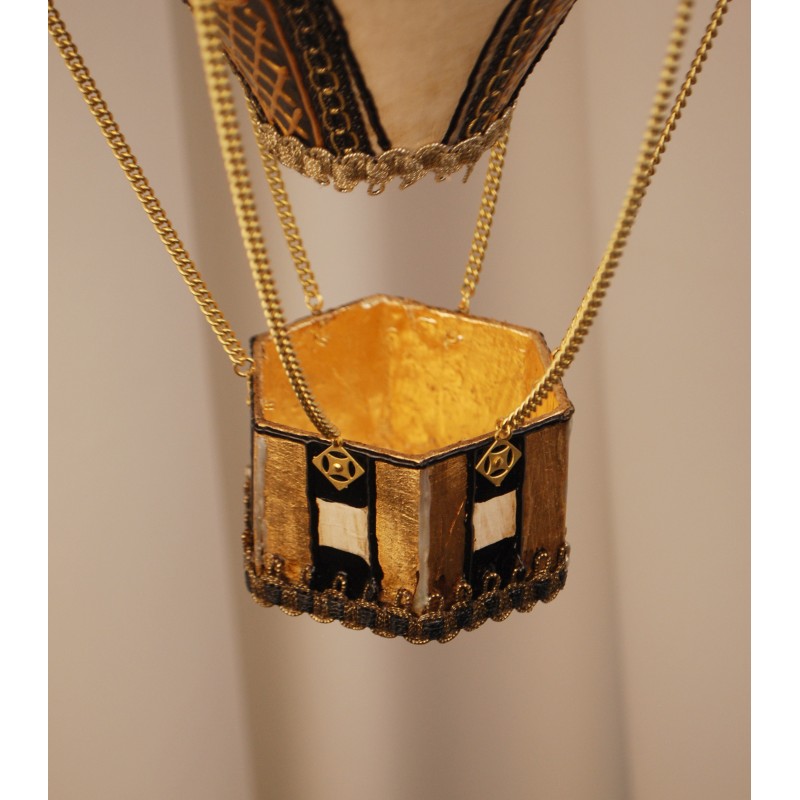 Papier-mâché hot air balloon made entirely by hand. The gracefulness of the balloon and the delicacy of a finely decorated object.