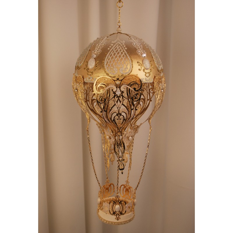 Papier-mâché hot air balloon made entirely by hand. The gracefulness of the balloon and the delicacy of a finely decorated object.
