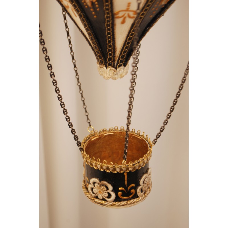 Papier-mâché hot air balloon made entirely by hand. The gracefulness of the balloon and the delicacy of a finely decorated object.