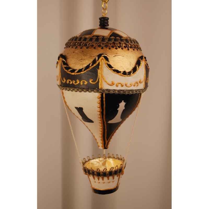 Papier-mâché hot air balloon made entirely by hand. The gracefulness of the balloon and the delicacy of a finely decorated object.