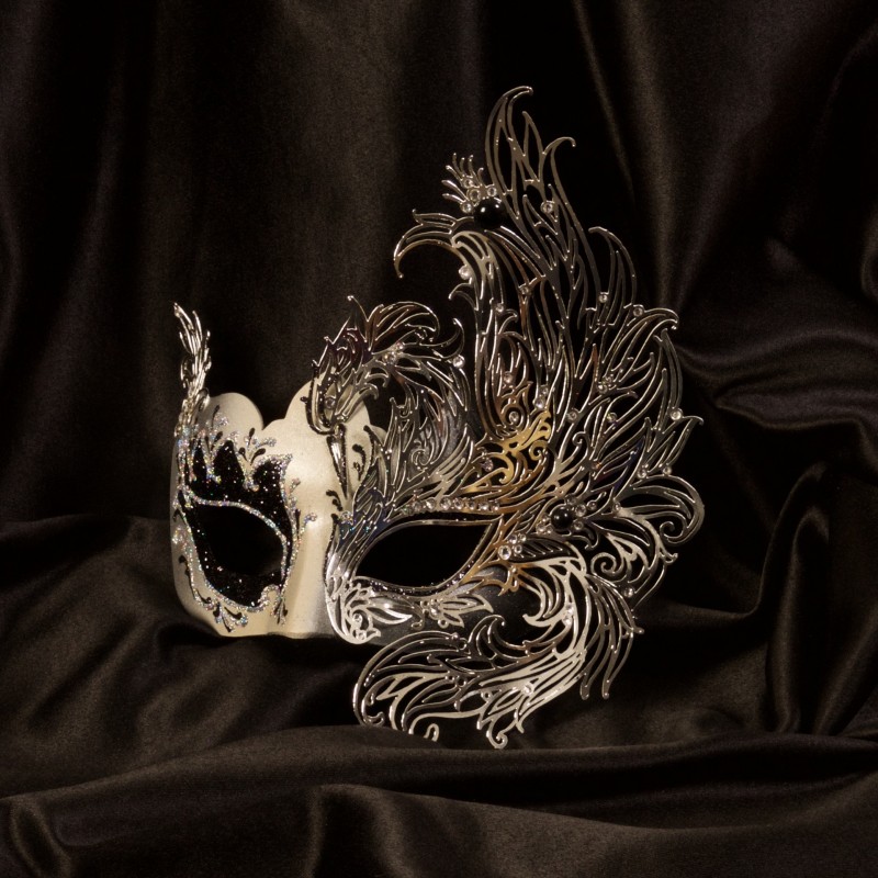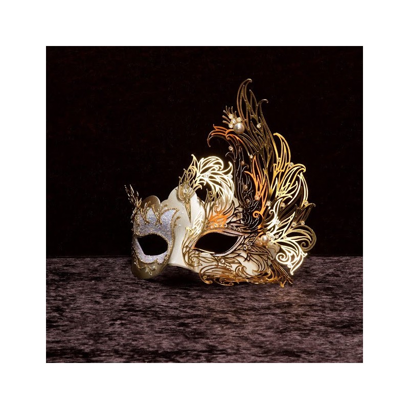 Decorata con passamanerie, perle, metalli traforati e cristalli di altissima qualità, per una serata scintillante. La maschera nella sua essenza: un oggetto fatto per celare, ma anche per mostrare.