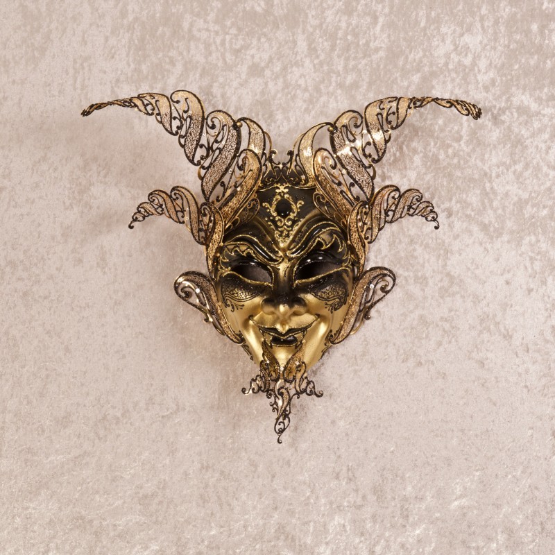 Authentic Venetian mask in papier maché, handcrafted according to tradition by La Fucina dei Miracoli craftspeople since 1975. Each mask is provided with satin ribbons and certificate of authenticity.
