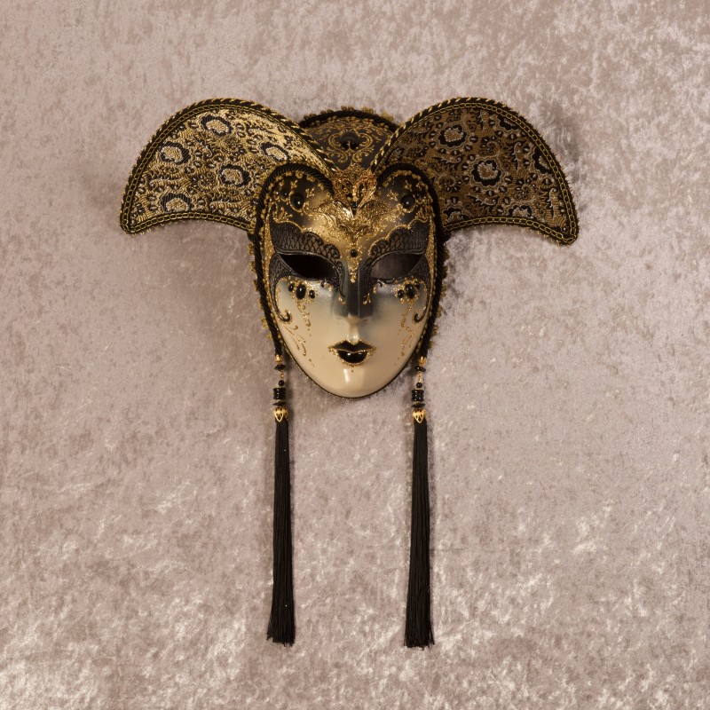 Authentic Venetian mask in papier maché, handcrafted according to tradition by La Fucina dei Miracoli craftspeople since 1975. Each mask is provided with satin ribbons and certificate of authenticity.