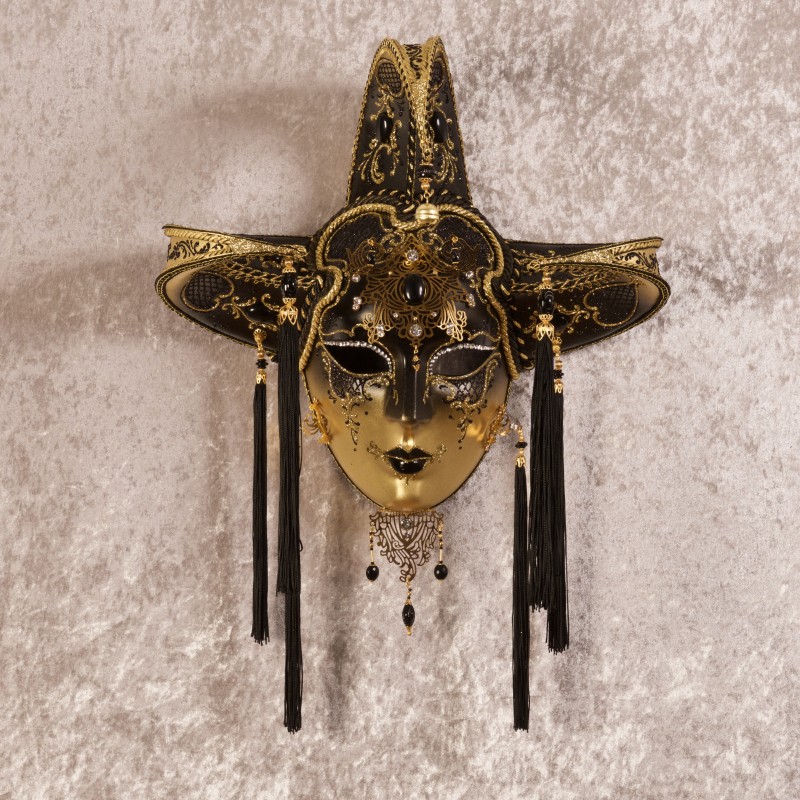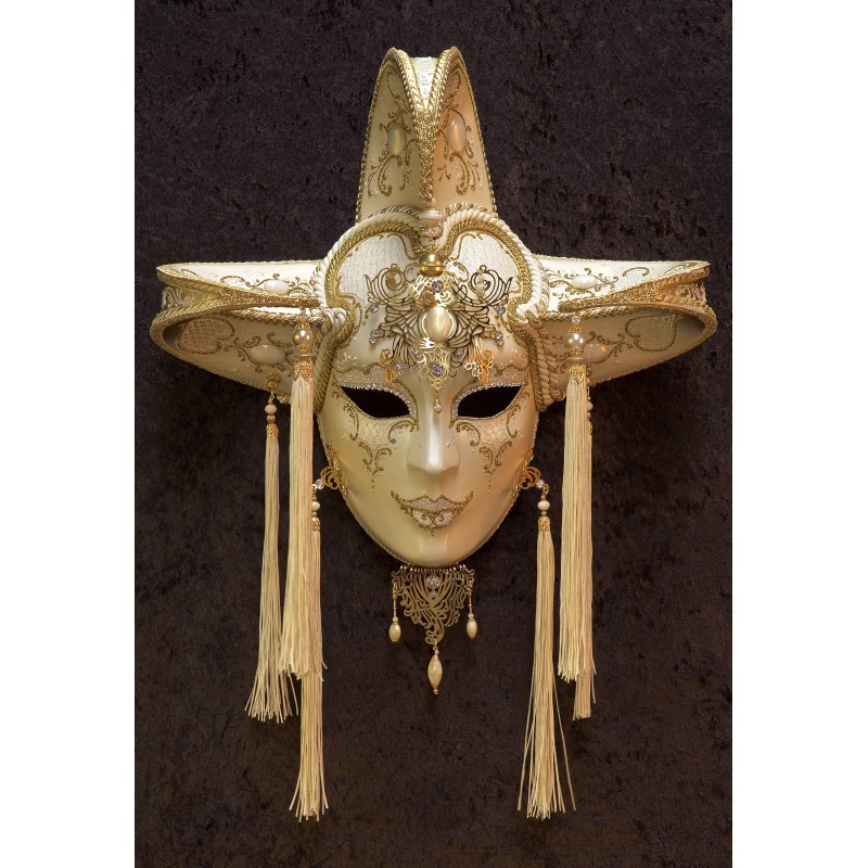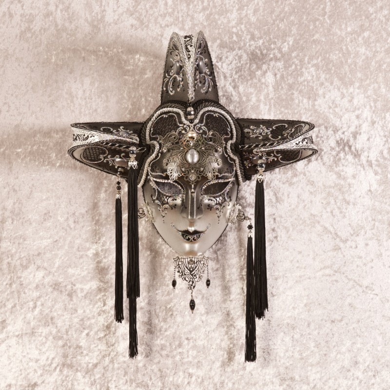 Authentic Venetian mask in papier maché, handcrafted according to tradition by La Fucina dei Miracoli craftspeople since 1975. Each mask is provided with satin ribbons and certificate of authenticity.