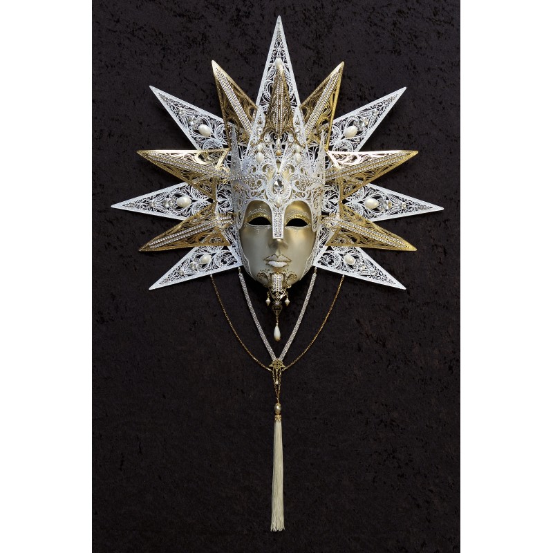 Authentic Venetian mask in papier maché, handcrafted according to tradition by La Fucina dei Miracoli craftspeople since 1975. Each mask is provided with satin ribbons and certificate of authenticity.