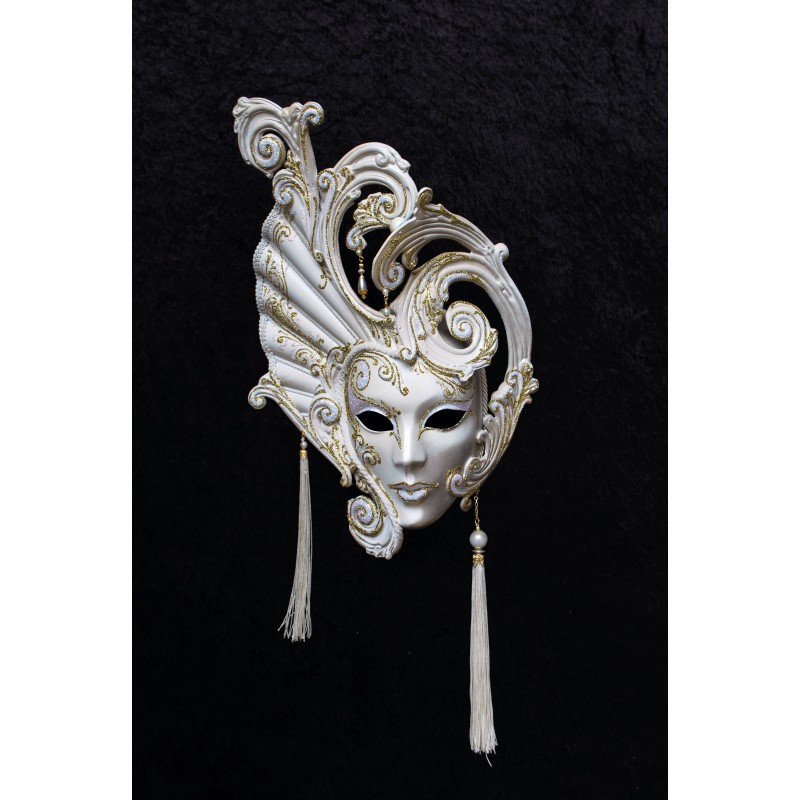 Authentic Venetian mask in papier maché, handcrafted according to tradition by La Fucina dei Miracoli craftspeople since 1975. Each mask is provided with satin ribbons and certificate of authenticity.