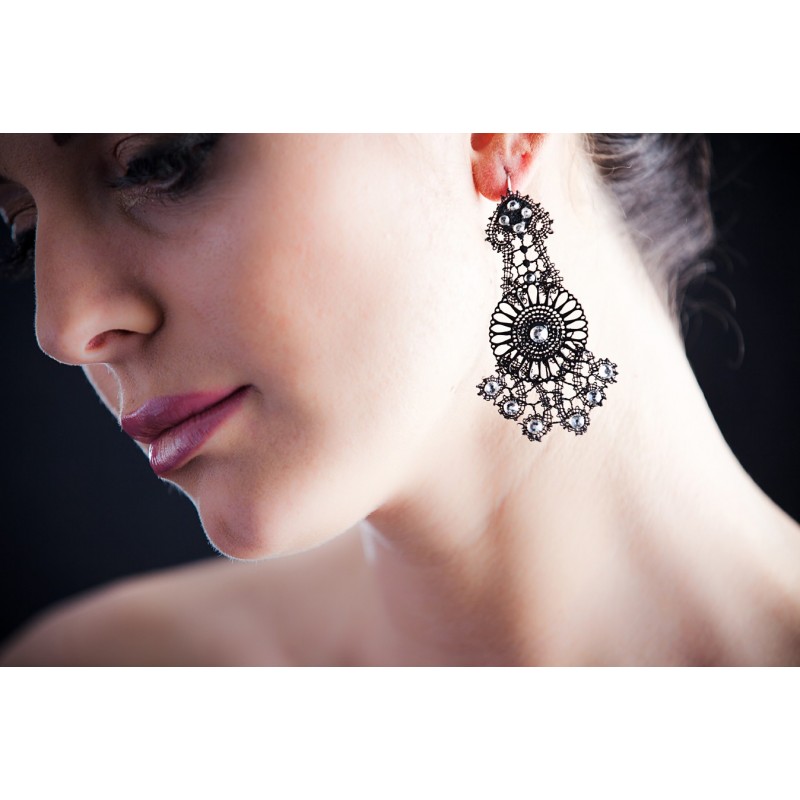 Handmade lace earrings with high quality crystals.